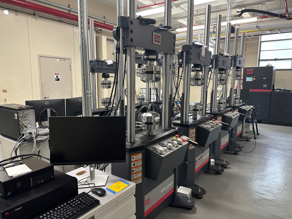 The previous newsletter hinted that a portion of the GRI and ARL Drivetrain Technology Center lab space in Research Building West was undergoing renovation. The space has been transformed and is now home to seven brand new servo-hydraulic fatigue test frames (100 kN) with hydraulic wedge grips and a 60 gpm silent-flo hydraulic power unit. In the near term, this equipment will be used primarily for material property development studies to support US Navy programs. Upon completion, the test frames will be available to support other programs, including those for GRI.